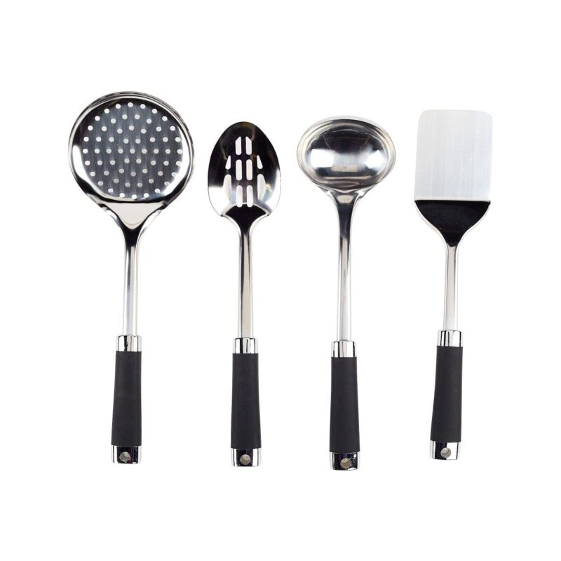 Chef Delicious Stainless Steel 4-Piece Utensil Set – Skimmer – Slotted Turner – Solid Spoon – Ladle